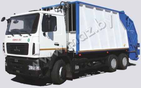 Трехосный автомобиль-самосвал для перевозки зерна МАЗ-650108-225-000 с разгрузкой платформы на правую сторону. Предназначен для перевозки зерна и других сыпучих легковесных грузов в составе автопоездов с трехосным прицепом